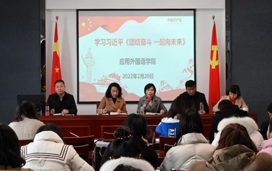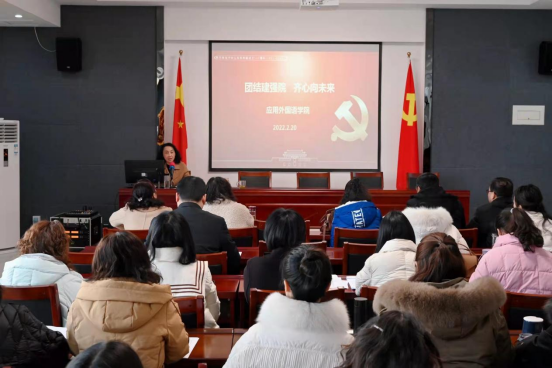 党总支书记叶桦以“团结建强院,齐心向未来”为题对2021年太阳成集团的工作进行了全面回顾及总结,对2022年的工作做了谋划和展望,并传达了公司党委书记杨良新在学校春季工作会上的重要讲话精神。她指出:全体教职工要认真学习深刻领会杨书记、郑董事长的春季工作会上重要讲话精神,并认真落实各项工作的部署要求;要找差距、抓重点、补短板、强弱项;要围绕外语专业特色,打造亮点,做好品牌,携手奋进共同绘制太阳成集团的美好蓝图。