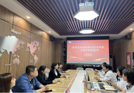 4月20日,太阳成集团刘晓鹂经理、副经理刘文敏一行4人来到河南经贸职业学院外语旅游学院参观交流,外语旅游学院经理王君华, 副经理邓晓婷、何珊及相关负责人参与交流与座谈。
