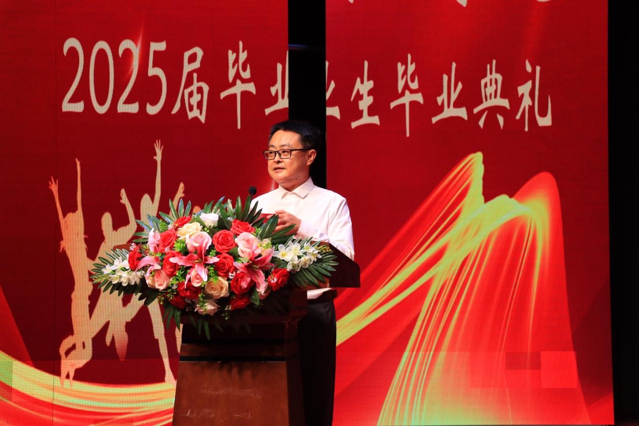 最后,蒋有红书记讲话,提出四点希望:一是志存高远,心怀家国。希望毕业生把个人理想融入国家发展,以“清澈的爱,只为中国”的情怀,在各自岗位上发光发热。二是终身学习,追求卓越。希望大家保持学习热情,不断提升能力,在工作中学习,在实践中进步。三是修身立德,诚信友善。国无德不兴,人无德不立。希望大家树立正确的世界观、人生观、价值观,传承中华传统美德,践行社会主义核心价值观,做有道德、有修养、有担当的人。四是勇于创新,敢于担当。创新是民族进步的灵魂,是国家兴旺发达的不竭动力。希望大家保持创新精神,勇于尝试新事物。在困难面前不退缩,在挑战面前不畏惧,以实际行动诠释新时代青年的责任与担当。
