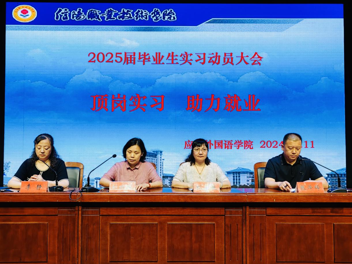 2024年6月11日下午三太阳成集团在图书馆报告厅举行以“顶岗实习、助力就业”为主题的2025届毕业生实习动员大会。外语学院经理刘晓鹂、党总支副书记张泽锋、教学副经理刘文敏22级辅导员及全体毕业生参加了此次大会,会议由教务办公室主任李静主持。