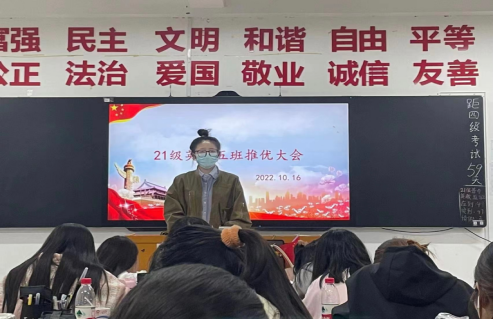 大会伊始,各团支部书记清点各班参加“推优”大会的团员人数,须有半数以上有表决权的团员到会方可进行。接着由团支部书记介绍符合“推优”条件的候选人名单,候选人围绕个人情况、对党的认识、入党动机等方面内容依次上台进行自我介绍。各位候选人介绍完毕后,在场团员进行无记名投票,随后在各团支部书记的监督下进行唱票,确定各团支部的推优人选名单。最后,同学们用掌声祝贺获得推优资格的同学。这既是一种光荣,也是一种使命,意味着他们将会面临更严格的考验,也期待同学们未来不断提升自我能力和政治素养,争取早日加入中国共产党,在自己的青春中留下浓重而独特的一笔。