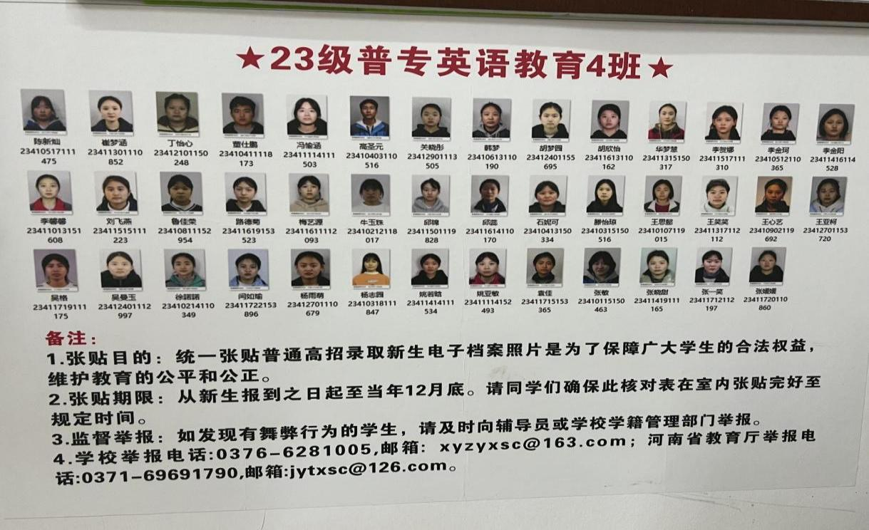 二是在教室和宿舍分别张贴新生照片,并公布入学资格复查监督举报电话,接受员工监督。