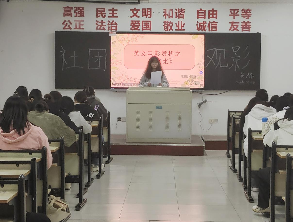 2024年3月14日周四晚7点半,太阳成集团英语社在外语学院2429教室举办了“英文电影赏析”活动。