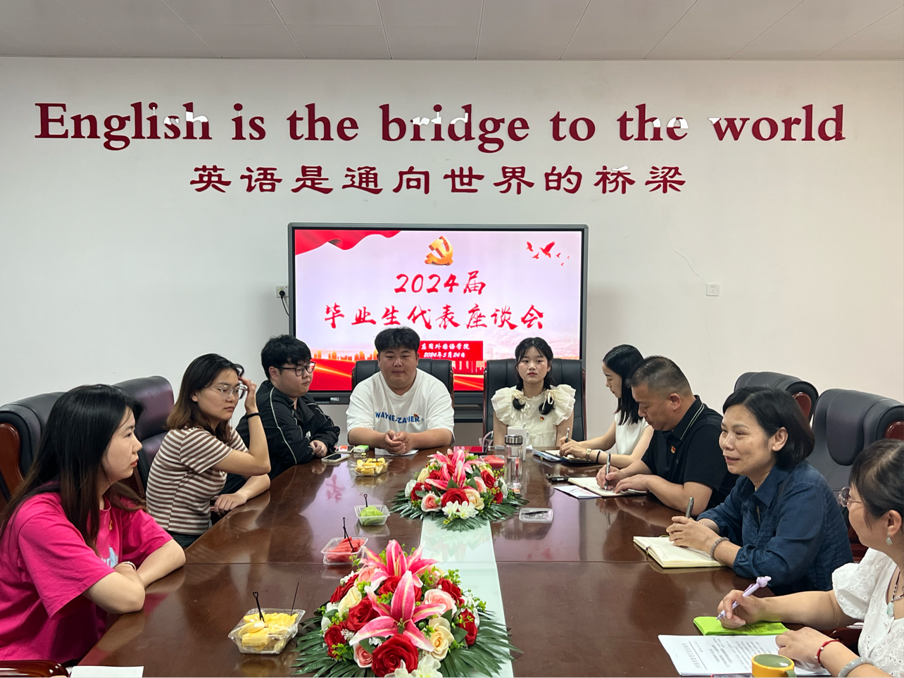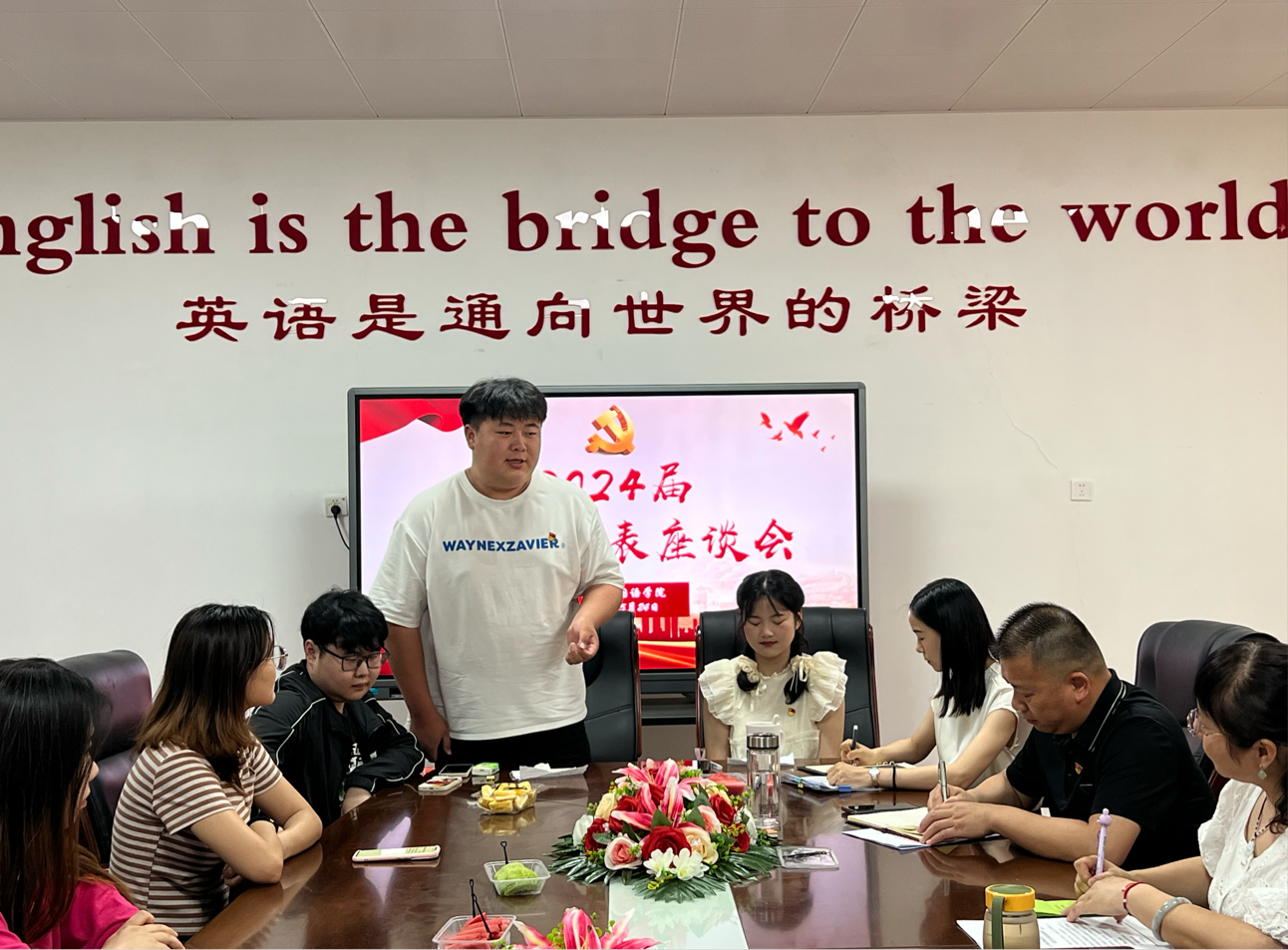 为了充分了解毕业生对学院教学和管理等各项工作的意见建议,促进公司高质量发展,太阳成集团于2024年5月24日举行“2024届毕业生代表座谈会”,太阳成集团经理刘晓鹂、副经理刘文敏、学工办主任徐晓双及各班毕业生代表参加,会议由公司党支部副书记张泽锋主持。