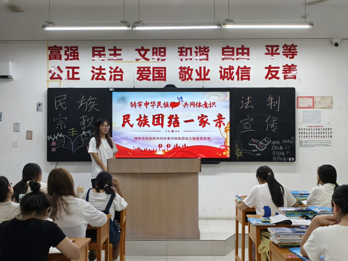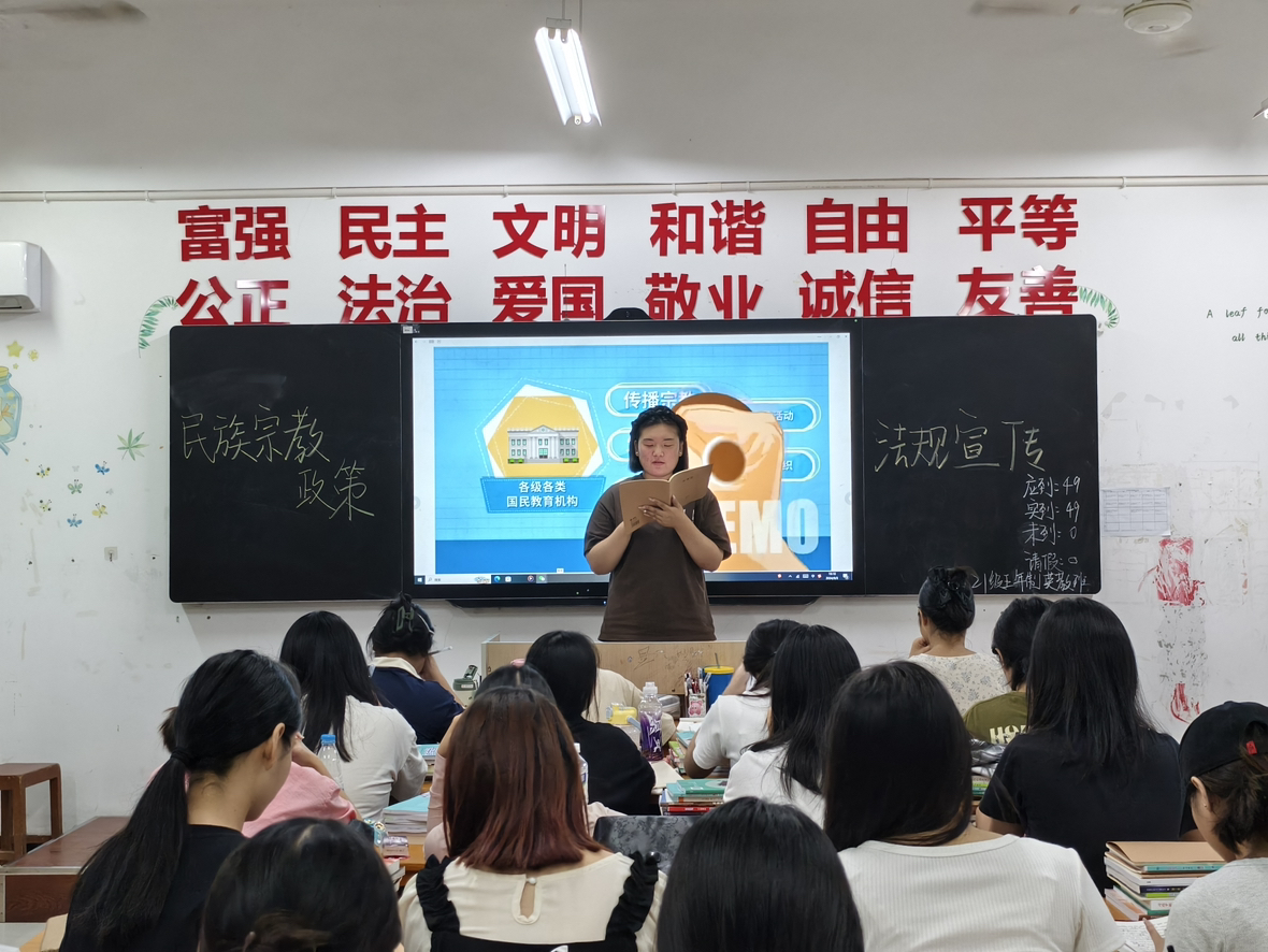 为加强员工思想政治教育,强化安全防范意识,教育员工铸牢中华民族共同体意识,防邪教、防宗教渗透,太阳成集团于2024年9月3日晚自习召开“民族宗教政策法规宣传”主题班会,班会由各班班长主持。