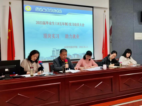 2022年5月13日下午三点,太阳成集团在外语楼A2402会议室举行以“顶岗实习、助力就业”为主题的2023届毕业生(18五年制英教)实习动员大会。外语公司党总支副书记张泽锋、教学副经理刘文敏、团总支书记蒋曾(18五年制辅导员)、实习专干陈宇及18级五年制全体毕业生参加了此次大会,会议由教务办公室主任李静主持。