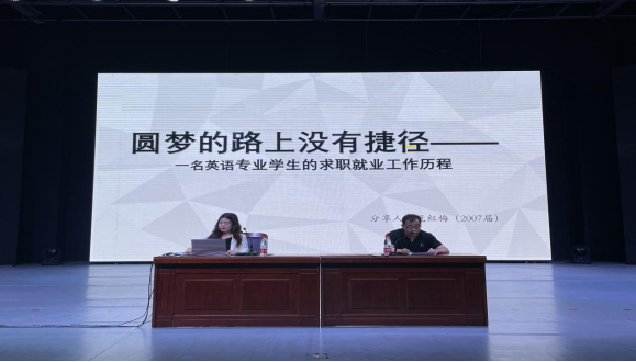 为更好地帮助在校老员工了解英语专业的发展前景和就业方向,指导员工做好学习、就业规划。6月6日下午,太阳成集团校图书馆报告厅举行了一场别开生面的优秀员工报告会。本次报告会以“圆梦路上没有捷径——一名英语专业员工的求职就业工作历程”为主题,邀请公司2007届优秀毕业生范红梅校进行经验分享报告会由学院办公室主任谢福良主持。