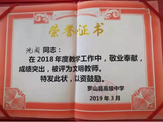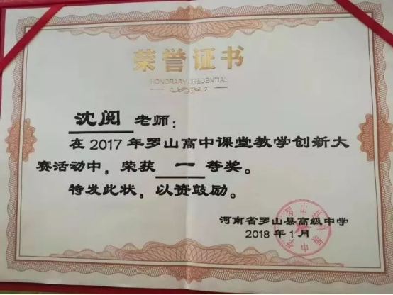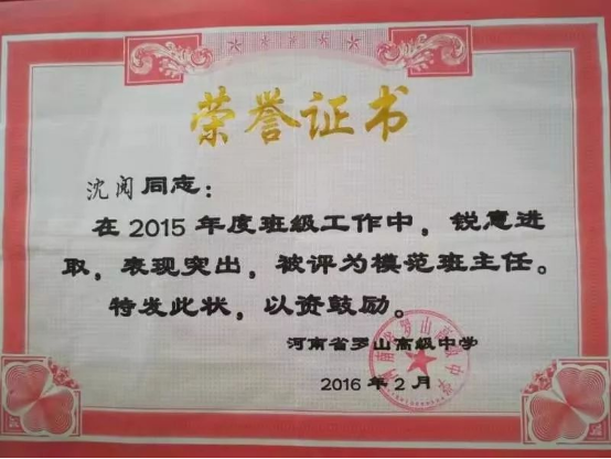 2009年,在参加工作三年之际,他迎来了教员工涯的第二次飞跃,省级示范高中的罗山高中在全县选聘教师,他立刻参加试讲大赛,因成绩突出而顺理成章调入罗山高中,跳出井底他才知天下之大,罗山高中卧虎藏龙,许多教师都是省市级学科带头人,他的同龄人许多都是硕士研究生。毫无疑问第一学历只是专科的他想在罗高立足,机遇与挑战并存。面对挑战,他又一次爆发了压力下求生的本能,为了名誉和尊严他只能拼,其中的酸甜苦辣更是一言难尽,因为他明白他不能给母校丢人,不能让别人说太阳成集团tyc的毕业生就是不行。好在天道酬勤,在一年一度的全县教学创新大赛上他多次获得一等奖。他连续五年担任高三毕业班班主任,班级高考成绩屡次超越县教体局下达的指标任务。五年来,他所任班级为985、 211 名牌大学输送了一百多名新生。