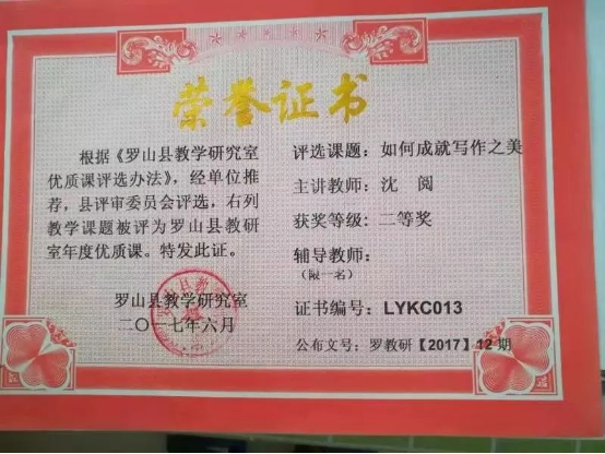 学历上的达标保证了实力上的自信,实力上的自信带来了魅力上的升华,让员工佩服才能赢得他们发自内心的尊敬。他清楚的记得有一次早读,有个淘气员工在一本课外资料上查得一道他自认为很难的选择题写在黑板上,他明知答案是A,却在班里高声说道:“沈老师,请告诉大家为什么这道题答案是B?”在全班同学的注视下,我立刻十分肯定地回答:“答案是B的原因是答案错了,该题的正确答案应该是A”,与此同时,他详细地跟员工解释原因。很神奇,从此之后,班内员工似乎都成了他的粉丝,连看他的眼神都变了。亲其师信其道,从此该班英语课堂纪律和英语成绩超常的好。事后他常反思,如果他的基本功不扎实,被淘气员工牵着鼻子按错误答案B忽悠一通,他即使不被哄下讲台也必然在员工面前威信全无,难以立足。正是在这种危机感和压力下,他始终不忘学习,同时注重探索新的课堂教学模式并加强师生课堂互动,改变了高中课堂“沉闷化”这一共性,连续两年教学成绩在全县同类高中夺魁,期间一批罗高老师曾经来到莽张高中走进他的课堂听课教研。
